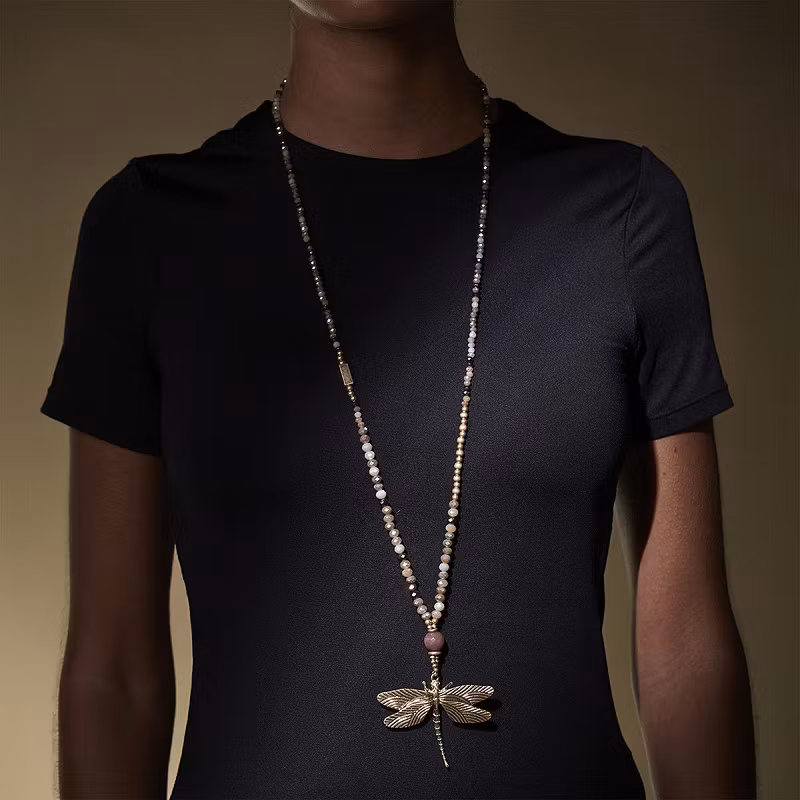 Halsband Iza brun/guld 13785 349 kr Långt halsband i brun/guldfärg, som avslutas med trollslända. I lager. Lägg i korgen Lagersaldo: 3 Artikelnummer: 844 Leverantör: The Moshi Produktbeskrivning Långt halsband i brun/guldfärg, som avslutas med trollslända.90% glas, 10% metall.