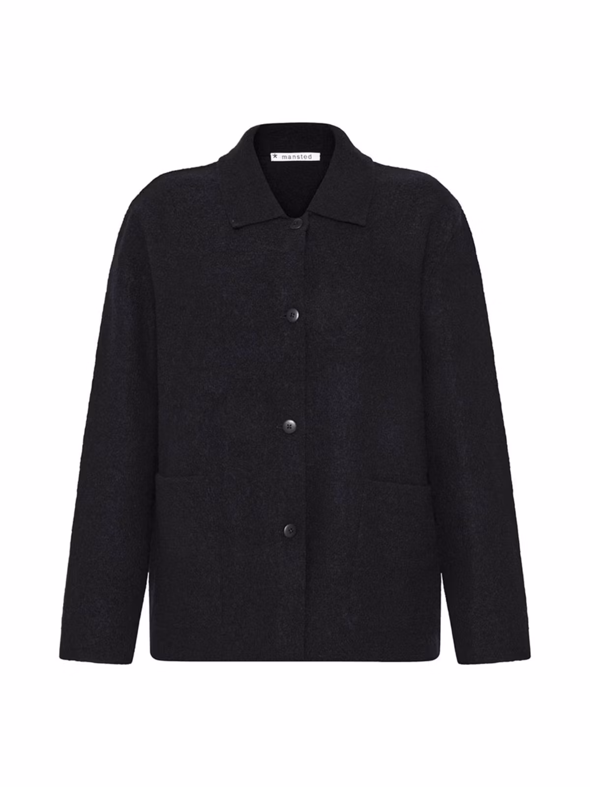 Jacka från Mansted med krage och slag. Sköna utanpåfickor. Fungerar både som jacka och kofta.