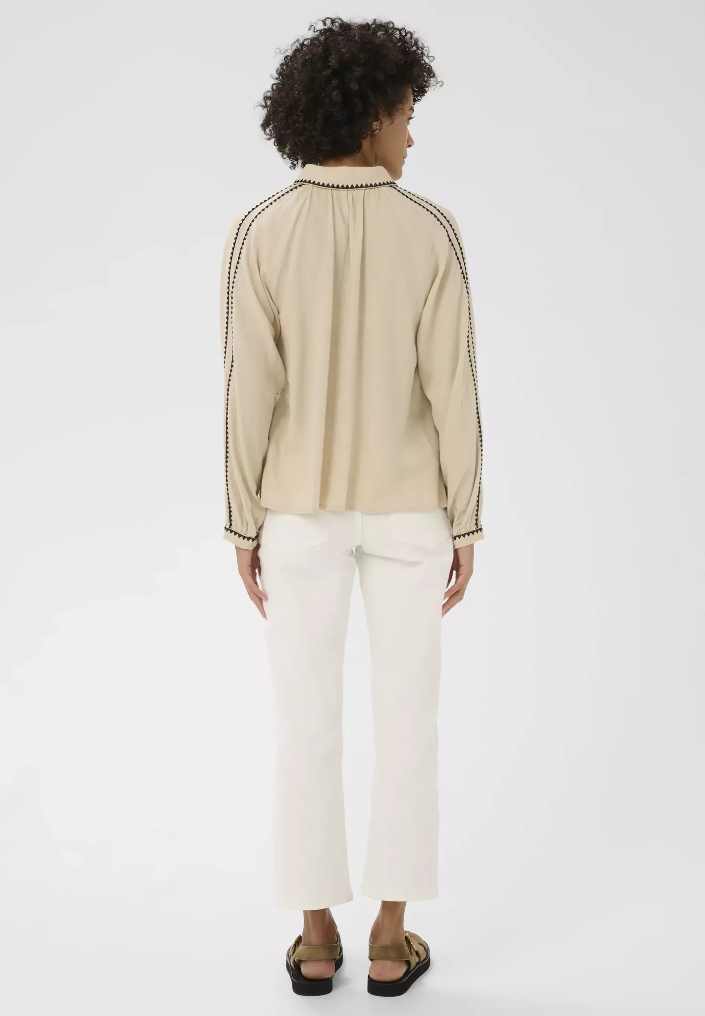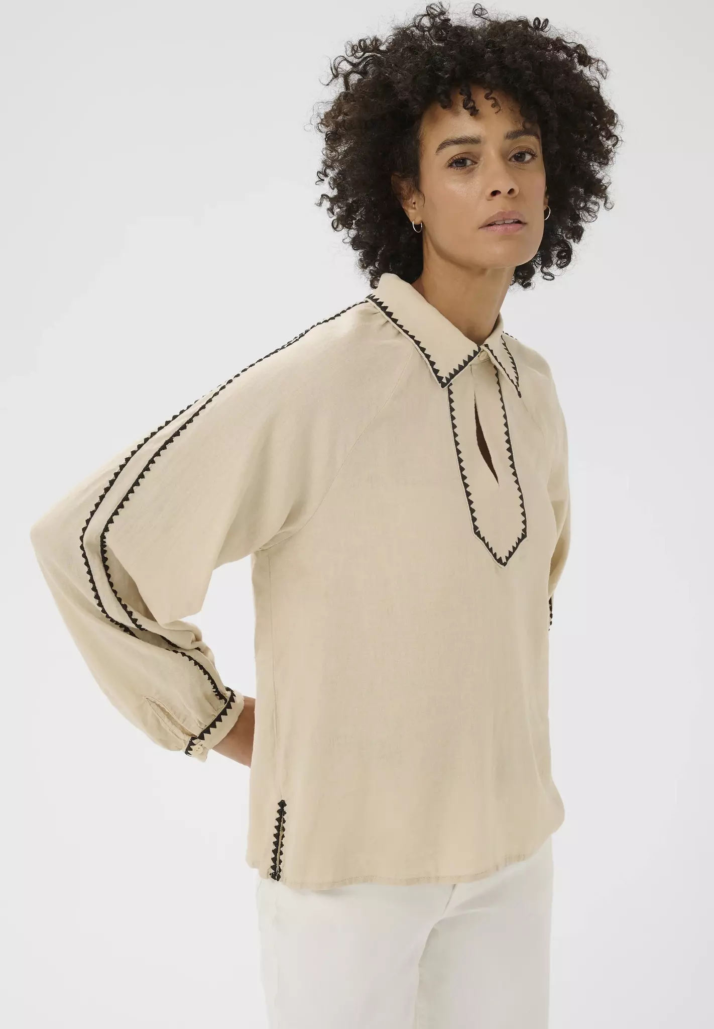 Detaljerad blus i skönt material, med kontrasterande kantband.