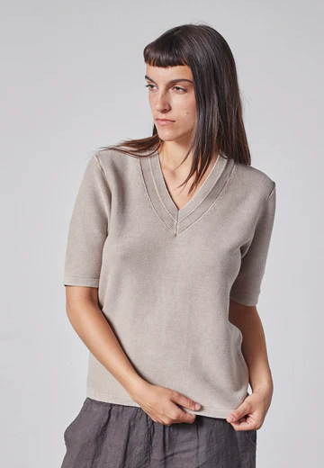 LiEsther taupe 899 kr Stickad v-ringad bomullstopp med litet sprund i sidan. Storlek S M L XL I lager. Lägg i korgen Lagersaldo: Artikelnummer: 790 Leverantör: Lind Produktbeskrivning Stickad v-ringad topp med litet sprund i sidan.100% bomull.